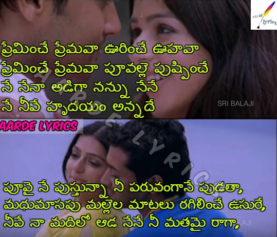 Sahasam Swasaga Sagipo Movie Songs Lyrics Lyrics Song Lyrics Movie Songs - Preminche premava urinche uhava preminche premava puvalle pushpinche ne nena adiga nannu nene ne neve hrudyam annade the preminche premava song lyrics is written by in the year 2006.